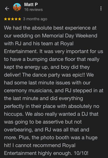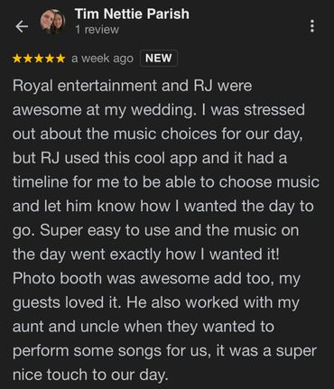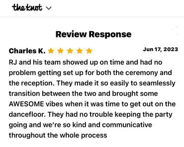We tailor our music according to our clients taste. During the booking process we send a planner for you to look over and fill out and it also has a page dedicated for your custom play list. We have a super huge library and can also do music streaming to make sure we have that special song.